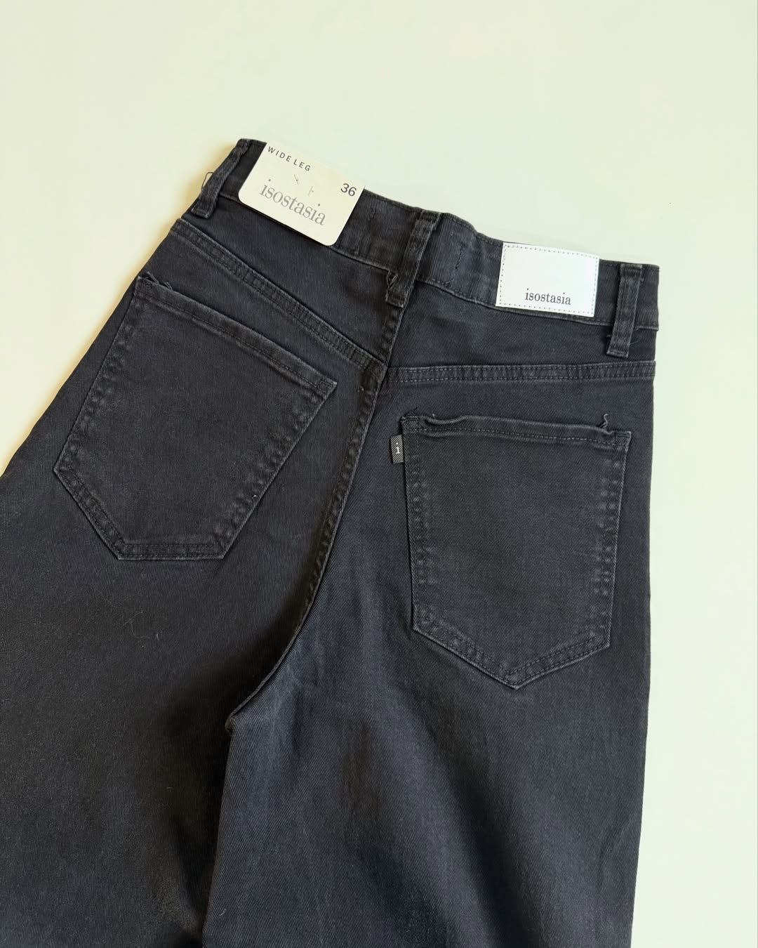 99% algodón. 1% lycra. Tiro alto. Botón y tachas negras zamak. Cierre YKK.