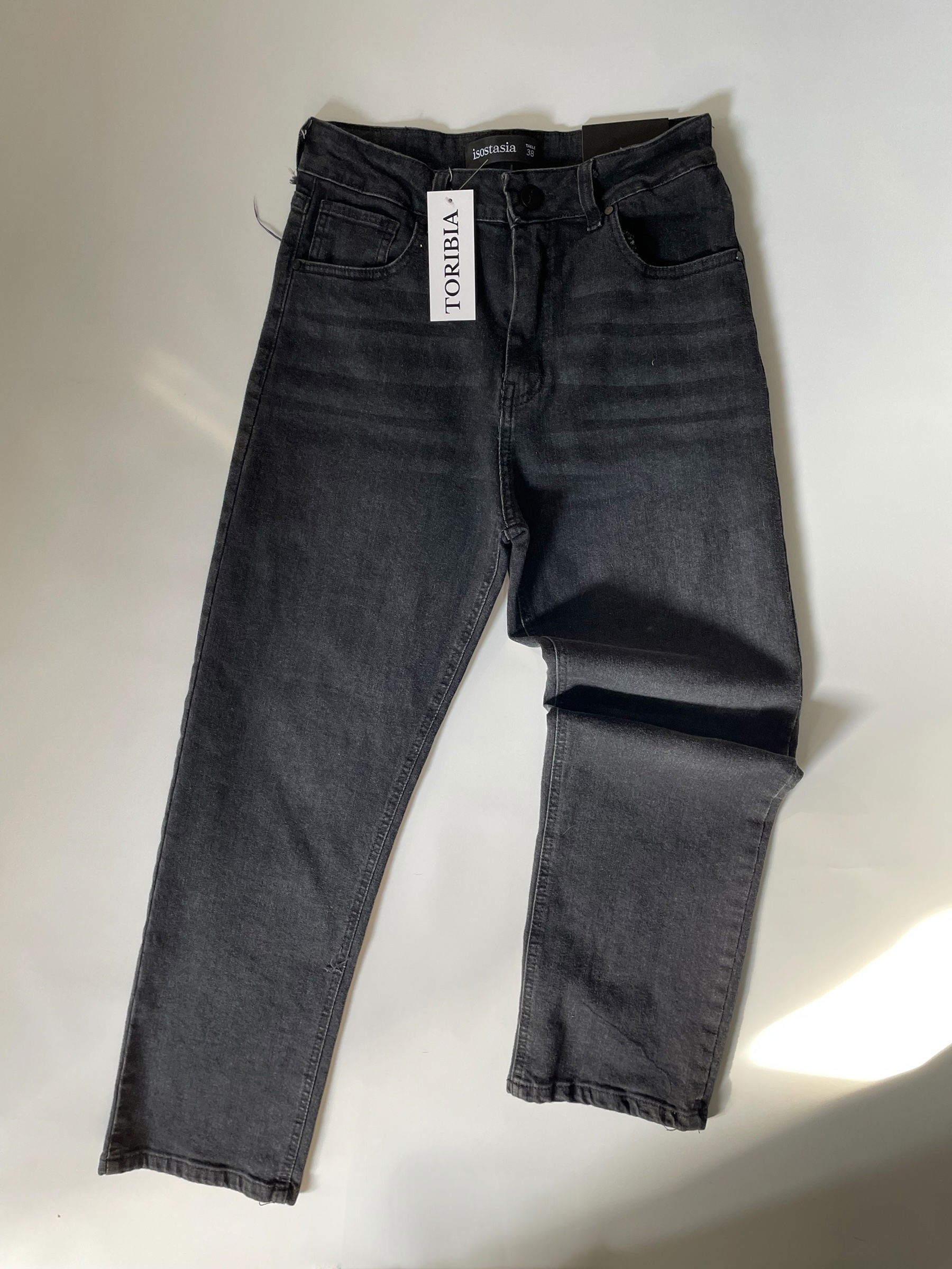 Straight elastizado 99% algodón. 1% lycra. Tiro alto. Botón y tachas negras zamak. Cierre YKK.