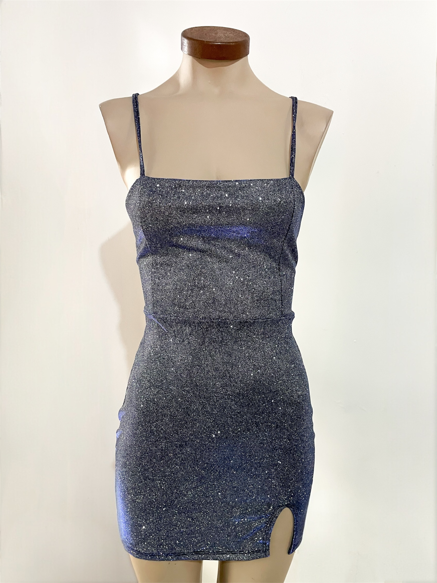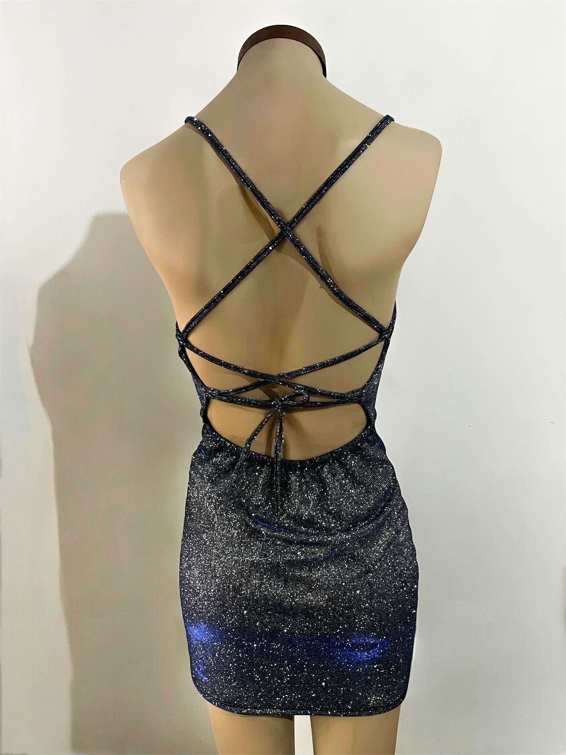 Vestido corto color azul tornasol.