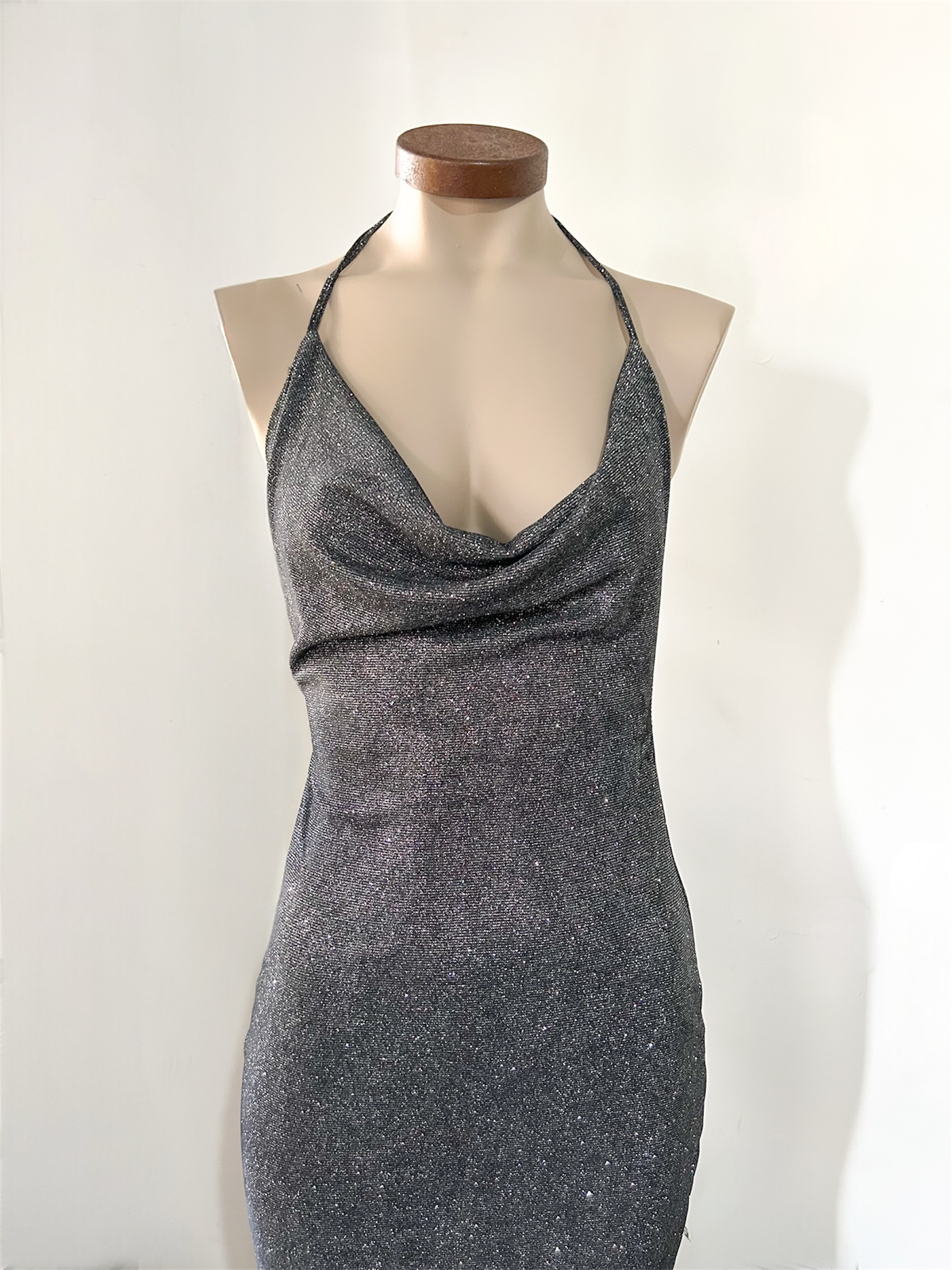 Vestido corto color gris oscuro.