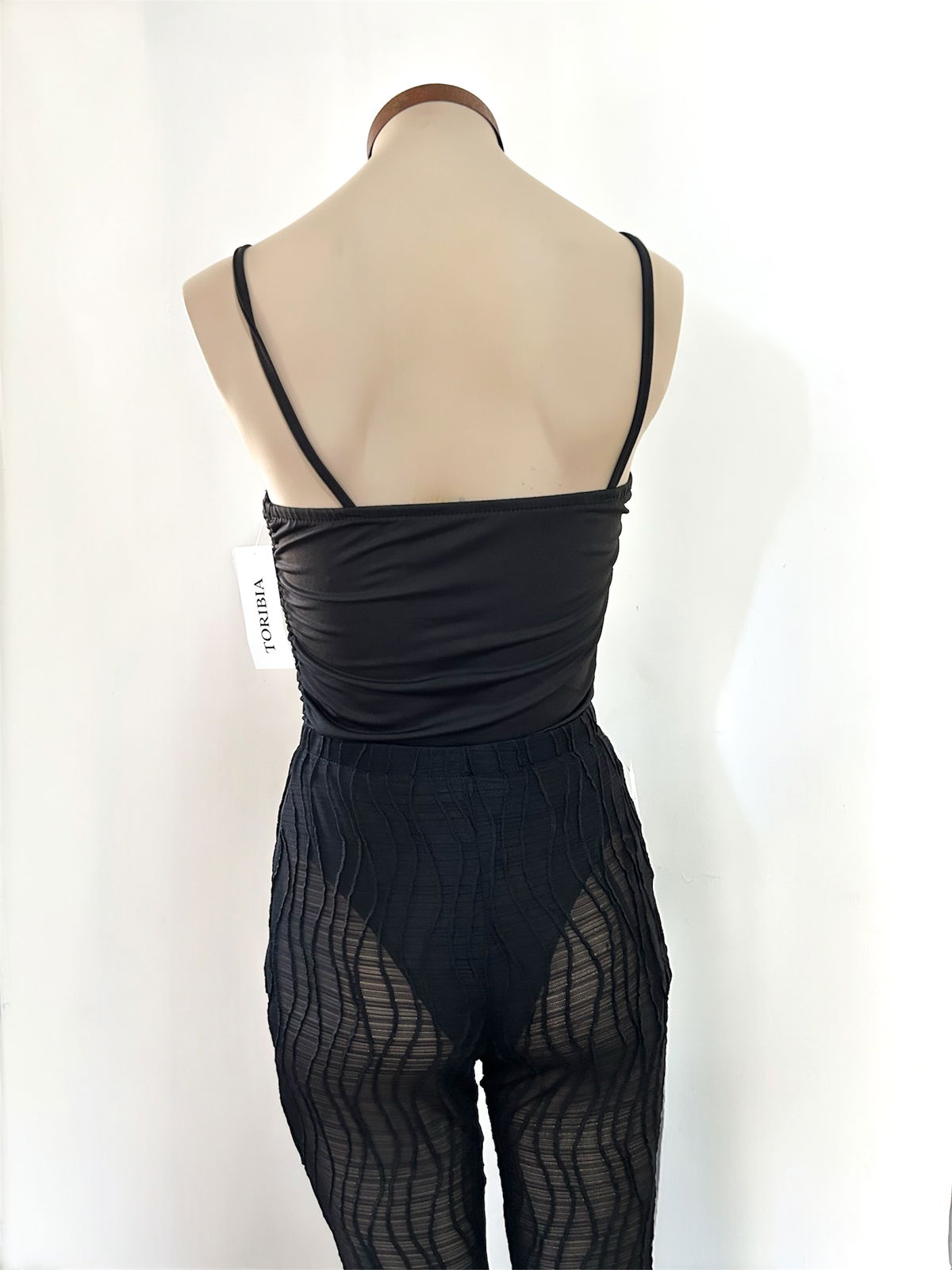 Pantalón cebra transparencia oxford combinado con el body Gina.