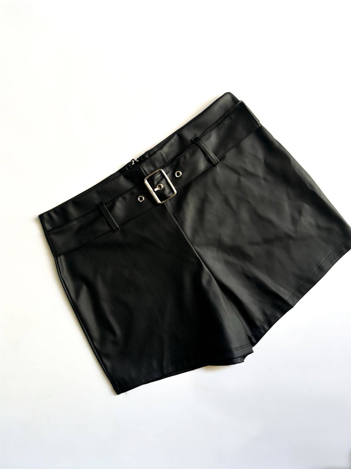 Short cuerina con hebilla y cierre en la parte trasera.