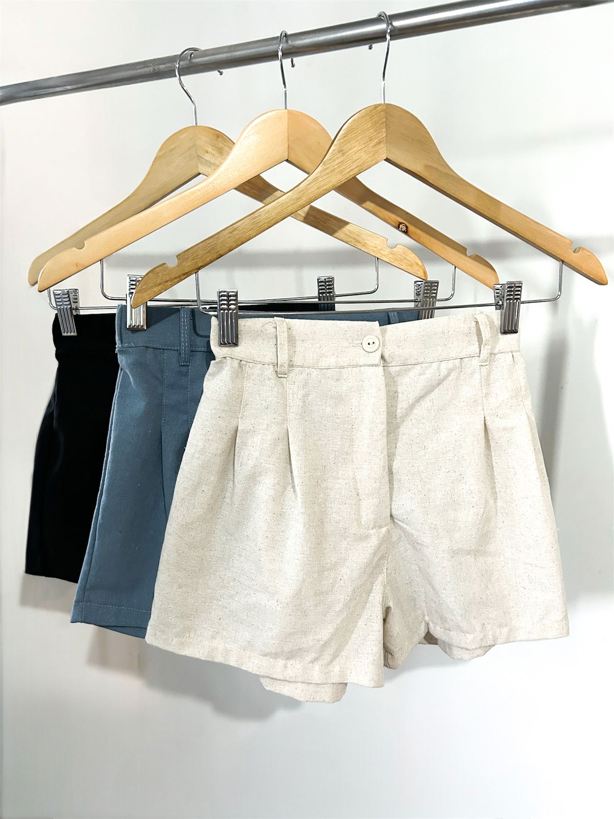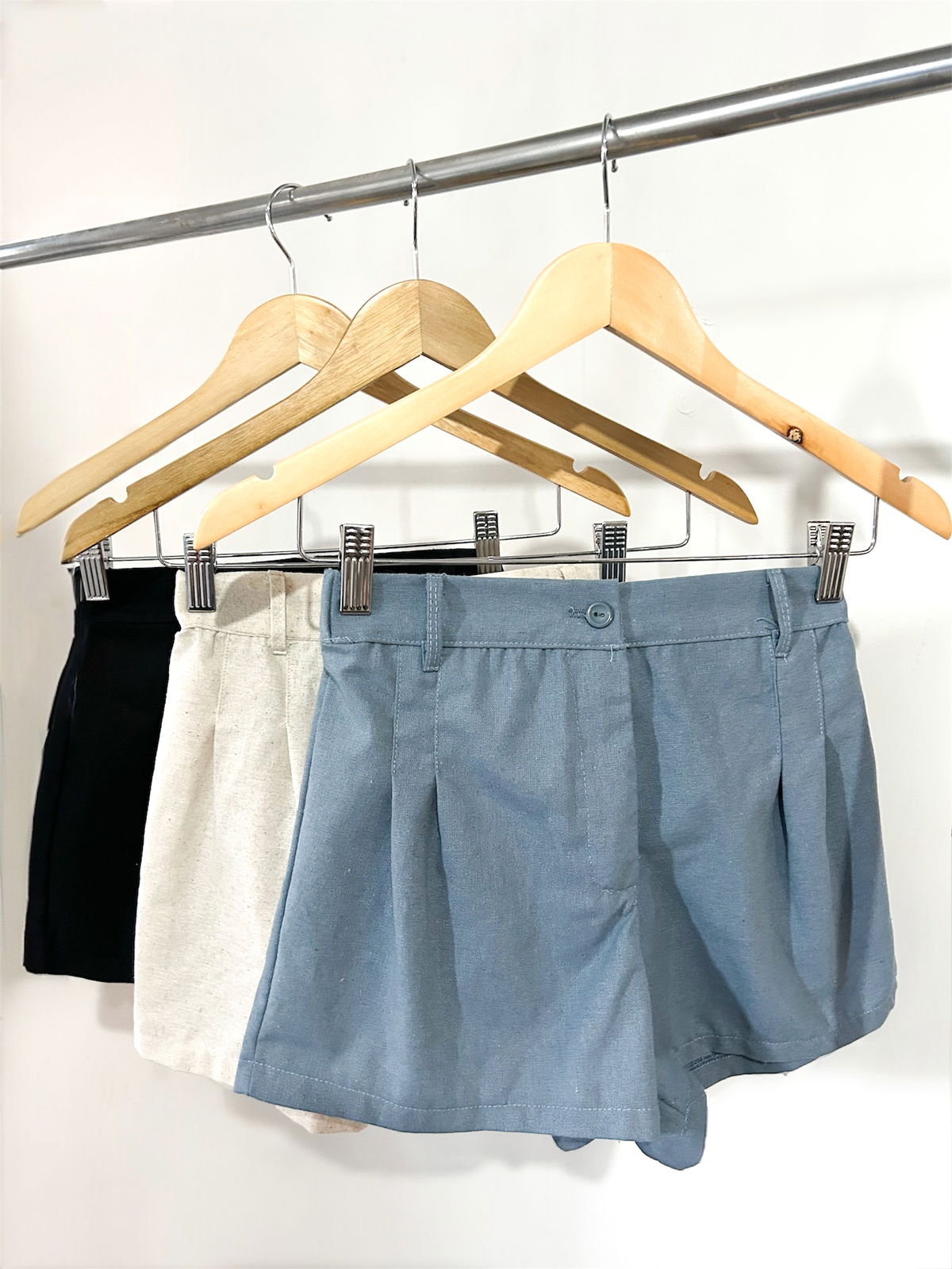 Short de lino con pinzas, pasacintos y elástico en la parte de atrás.