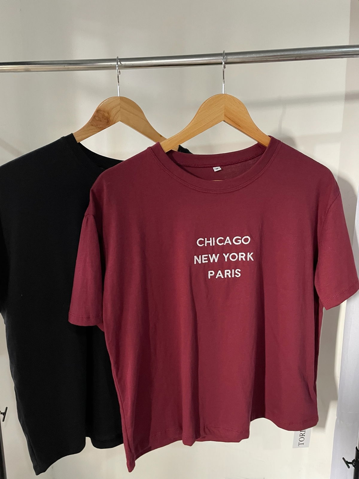 Remera hombro caido bordado en el delantero